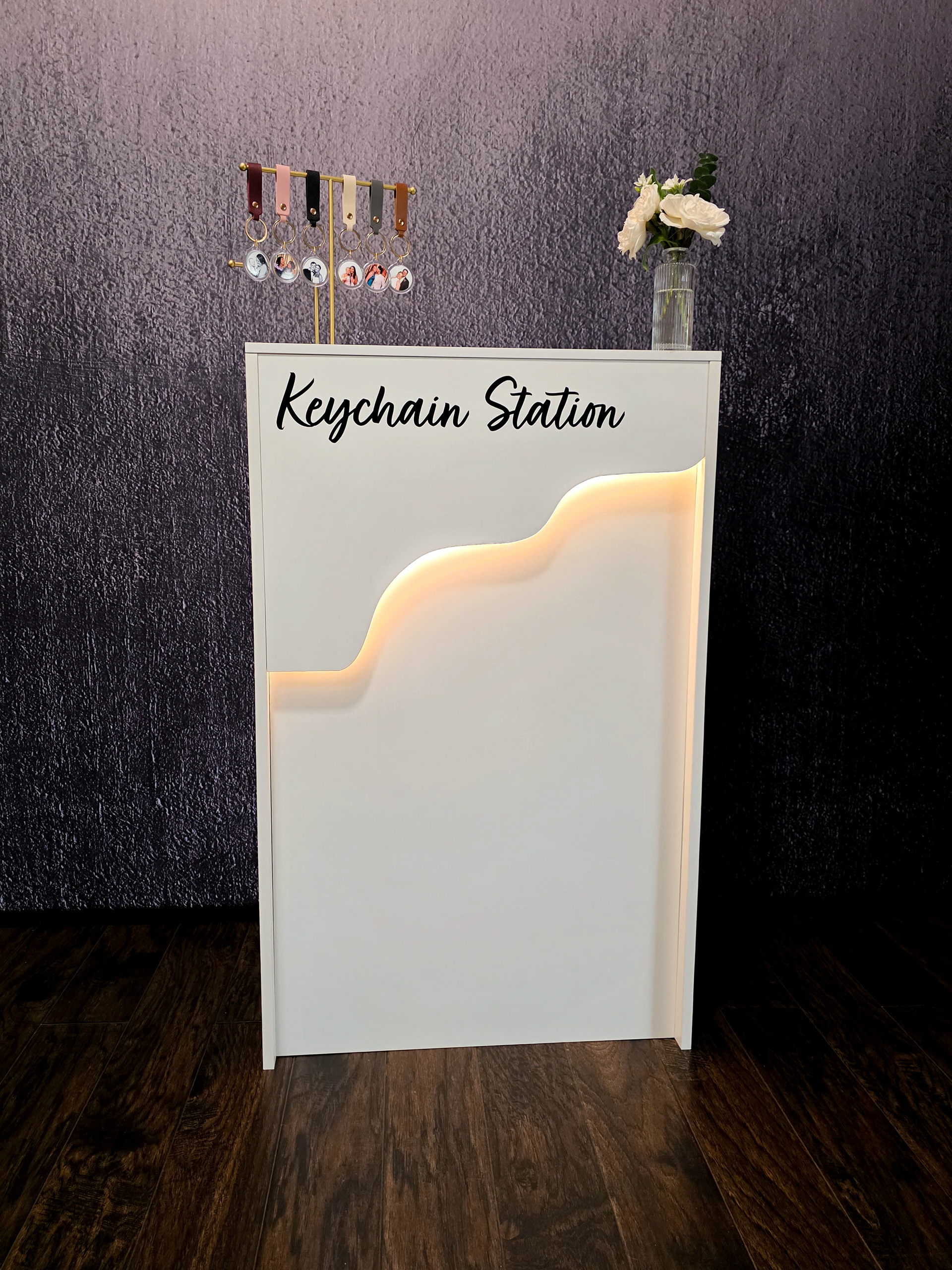 *Price includes on the spot professional assembly, 1-2 keychain attendants, keychains, leather straps, 2 photos per keychain, and a stylish white podium/station to fit any event decor. **Select events only, please message us for more information.